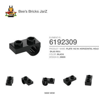 PLATE 1X2 W. HORIZONTAL HOLE Ø4,85 REV.Category: Plates, Plates, ModifiedColour: Black, BlackElement ID: 6192309Design ID: 28809