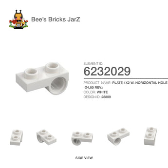 PLATE 1X2 W. HORIZONTAL HOLE Ø4,85 REV.Category: Plates, Plates, ModifiedColour: White, WhiteElement ID: 6232029Design ID: 28809