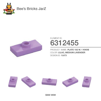 PLATE 1X2, W/ 1 KNOBCategory: Plates, PlatesColour: Purple, Medium LavenderElement ID: 6312455Design ID: 15573