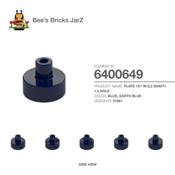 PLATE 1X1, W/ 3.2 SHAFT AND 1.5 HOLECategory: Plates, Plates, ModifiedColour: Blue, Earth BlueElement ID: 6429553Design ID: 31561