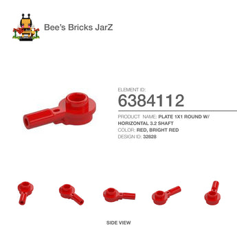 PLATE 1X1 ROUND W/ HORIZONTAL 3.2 SHAFTCategory: Plates, Plates, ModifiedColor: Red, Bright RedElement ID: 6384112Design ID: 32828