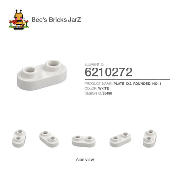 PLATE 1X2, ROUNDED, NO. 1Category: Plates, Plates, Round & AnglesColour: White, WhiteElement ID: 6210272Design ID: 35480