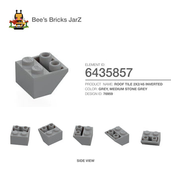 ROOF TILE 2X2/45 INVERTEDCategory: Bricks, Bricks, SlopesColour: Grey, Medium Stone GreyElement ID: 6435857Design ID: 76959