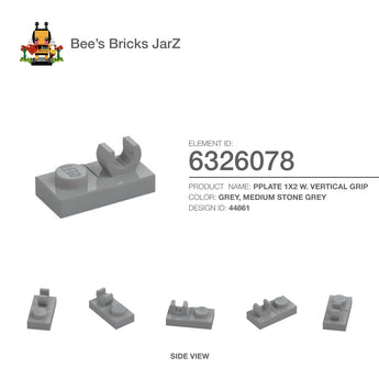 PLATE 1X2 W. VERTICAL GRIPCategory: Plates, Plates, ModifiedColour: Grey, Medium Stone GreyElement ID: 6326078Design ID: 44861