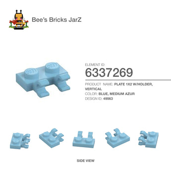PLATE 1X2 W/HOLDER, VERTICALCategory: Plates, Plates, ModifiedColour: Blue, Medium AzurElement ID: 6337269Design ID: 49563