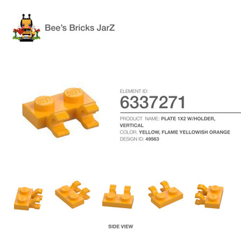 PLATE 1X2 W/HOLDER, VERTICALCategory: Plates, Plates, ModifiedColour: Yellow, Flame Yellowish OrangeElement ID: 6337271Design ID: 49563