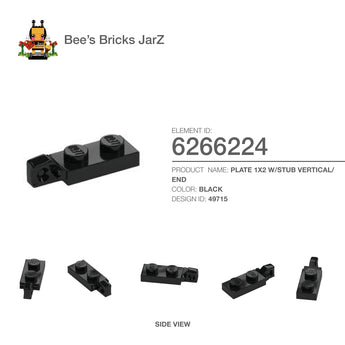 PLATE 1X2 W/STUB VERTICAL/ENDCategory: Plates, Plates, ModifiedColour: Black, BlackElement ID: 6266224Design ID: 49715