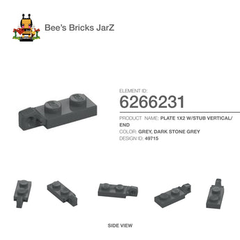 PLATE 1X2 W/STUB VERTICAL/ENDCategory: Plates, Plates, ModifiedColour: Grey, Dark Stone GreyElement ID: 6266225Design ID: 49715