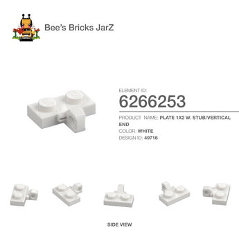 PLATE 1X2 W. STUB/VERTICALCategory: Plates, Plates, ModifiedColour: White,WhiteElement ID: 6266253Design ID: 49716