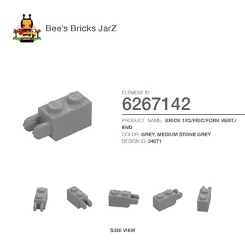 6267142-BRICK 1X2/FRIC/FORK VERT. /END-Medium Stone Grey