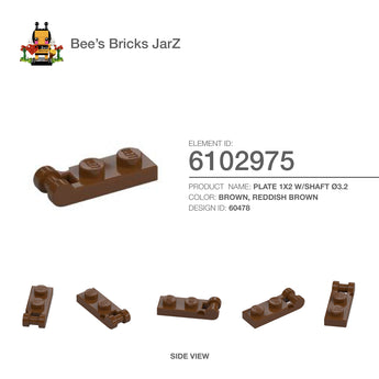 PLATE 1X2 W/SHAFT Ø3.2Category: Plates, Plates, ModifiedColour: Brown, Reddish BrownElement ID: 6102975Design ID: 60478