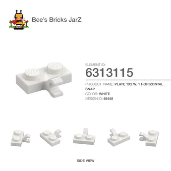 6313115-PLATE 1X2 W. 1 HORIZONTAL SNAP-White