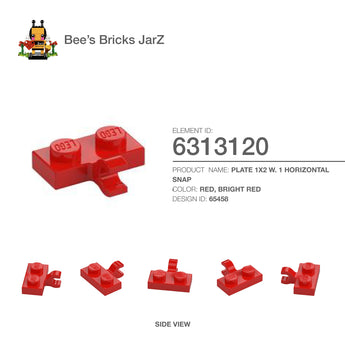 6313120-PLATE 1X2 W. 1 HORIZONTAL SNAP-Bright red