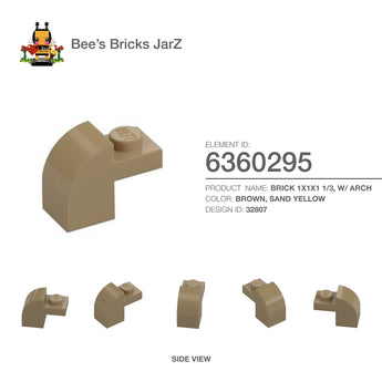 BRICK 1X1X1 1/3, W/ ARCHCategory: Bricks, Bricks, Bows & ArchesColour: Brown, Sand YellowElement ID: 6360295Design ID: 32807