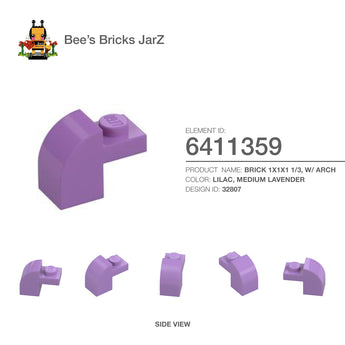 BRICK 1X1X1 1/3, W/ ARCHCategory: Bricks, Bricks, Bows & ArchesColour: Lilac, Medium LavenderElement ID: 6411359Design ID: 32807