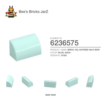 6236575-BRICK 1X2, OUTSIDE HALF BOW-Aqua