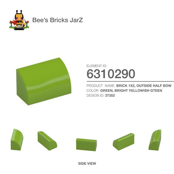 BRICK 1X2, OUTSIDE HALF BOWCategory: Bricks, Bricks, Bows & ArchesColour: Green, Bright Yellowish GreenElement ID: 6310290Design ID: 37352