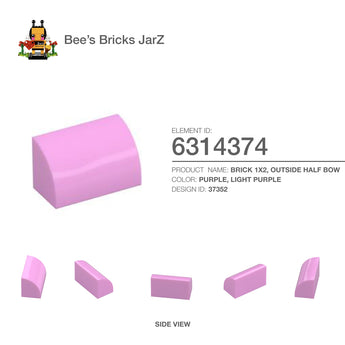 BRICK 1X2, OUTSIDE HALF BOWCategory: Bricks, Bricks, Bows & ArchesColour: Purple, Light PurpleElement ID: 6314374Design ID: 37352