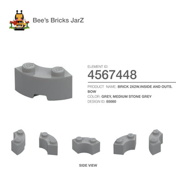 BRICK 2X2W.INSIDE AND OUTS.BOWCategory: Bricks, Bricks, Round & AnglesColour: Grey, Medium Stone GreyElement ID: 4567448Design ID: 85080