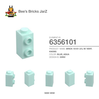 BRICK 1X1X1 2/3, W/ VERT. KNOBSCategory: Bricks, Bricks, ModifiedColour: Blue, AquaElement ID: 6356101Design ID: 32952