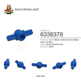 6336378-BEAM, 1 MODULE W/ 2 CROSS AXLE, 180 DEG.-Bright Blue