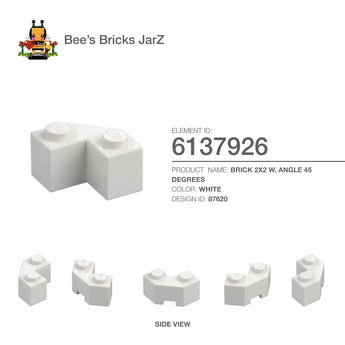 BRICK 2X2 W. ANGLE 45 DEGREESCategory: Bricks, Bricks, Bows & ArchesColour: White, WhiteElement ID: 6137926Design ID: 87620