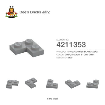 CORNER PLATE 1X2X2Category: Plates, PlatesColour: Grey, Medium Stone GreyElement ID: 4211353Design ID: 2420