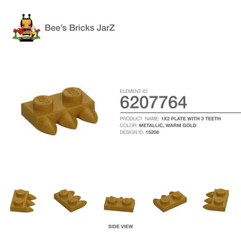 1X2 PLATE WITH 3 TEETHCategory: Miscellaneous, Decoration ElementsColour: Gold, Warm GoldElement ID: 6207764Design ID: 15208