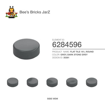 FLAT TILE 1X1, ROUNDCategory: Plates, Plates, Round & AnglesColour: Grey, Dark Stone GreyElement ID: 6284596Design ID: 35381