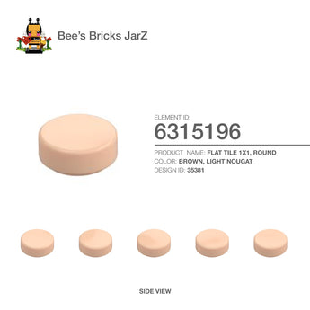 FLAT TILE 1X1, ROUNDCategory: Plates, Plates, Round & AnglesColour: Brown, Light NougatElement ID: 6315196Design ID: 35381