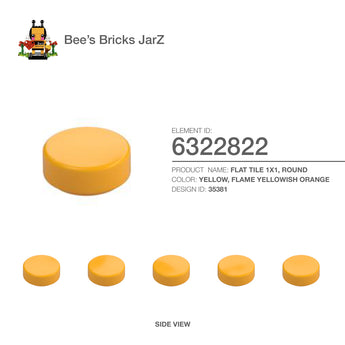 FLAT TILE 1X1, ROUNDCategory: Plates, Plates, Round & AnglesColour: Yellow, Flame Yellowish OrangeElement ID: 6322822Design ID: 35381