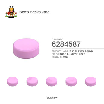 FLAT TILE 1X1, ROUNDCategory: Plates, Plates, Round & AnglesColour: Purple, Light PurpleElement ID: 6284587Design ID: 35381