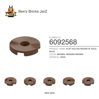 FLAT TILE 2X2 ROUND W. HOLE Ø4.85Category: Plates, Plates, Round & AnglesColour: Brown, Reddish BrownElement ID: 6092568Design ID: 15535