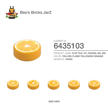 FLAT TILE 1X1, ROUND, NO. 259Category: Plates, Plates, Round & AnglesColour: Yellow, Flame Yellowish OrangeElement ID: 6435103Design ID: 103352