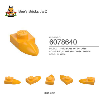 PLATE 1X1 W/TOOTHCategory: Miscellaneous, Decoration ElementsColour: Yellow, Flame Yellowish OrangeElement ID: 4282860Design ID: 49668