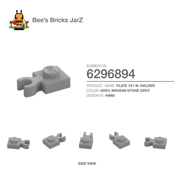 PLATE 1X1 W. HOLDERCategory: Plates, Plates, ModifiedColour: Grey, Medium Stone GreyElement ID: 6296894Design ID: 44860