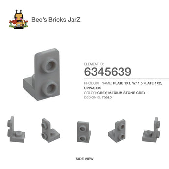 PLATE 1X1, W/ 1.5 PLATE 1X2, UPWARDSCategory: Plates, Plates, ModifiedColour: Medium Stone GreyElement ID: 6345639Design ID: 73825