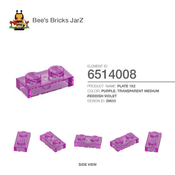 PLATE 1X2Category: Plates, PlatesColour: Purple, Transparent Medium Reddish VioletElement ID: 6514008Design ID: 28653