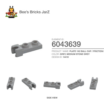 6043639-PLATE 1X2 BALL CUP / FRICTION END-Medium Stone Grey