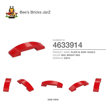 4633914-PLATE W. BOW 1X4X2/3-Bright Red