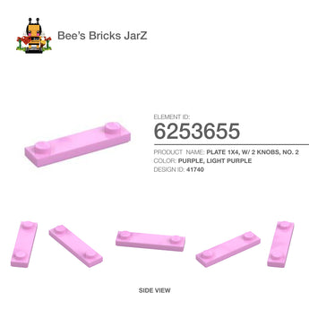 PLATE 1X4, W/ 2 KNOBS, NO. 2Category: Plates, PlatesColour: Purple, Light PurpleElement ID: 6253655Design ID: 41740