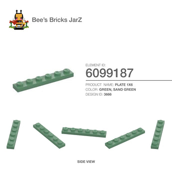 PLATE 1X6Category: Plates, PlatesColour: Green, Sand GreenElement ID: 6099187Design ID: 3666