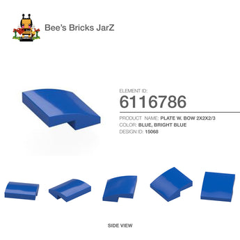 PLATE W. BOW 2X2X2/3Category: Bricks, Bricks, Bows & ArchesColour: Blue, Bright BlueElement ID: 6116786Design ID: 15068