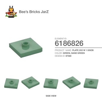 PLATE 2X2 W 1 KNOBCategory: Plates, PlatesColour: Green, Sand GreenElement ID: 6186826Design ID: 87580