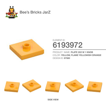 PLATE 2X2 W 1 KNOBCategory: Plates, PlatesColour: Yellow, Flame Yellowish OrangeElement ID: 6193972Design ID: 87580