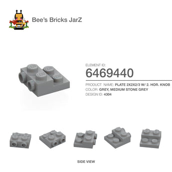 6469440-PLATE 2X2X2/3 W. 2. HOR. KNOB-Medium Stone Grey
