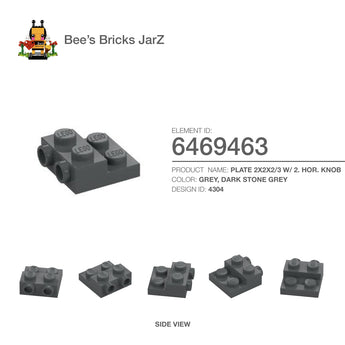 6469463-PLATE 2X2X2/3 W. 2. HOR. KNOB-Dark Stone Grey