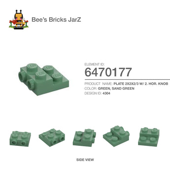 PLATE 2X2X2/3 W/ 2. HOR. KNOBCategory: Plates, Plates, ModifiedColour: Green, Sand GreenElement ID: 6470177/6223171Design ID: 99206/4304