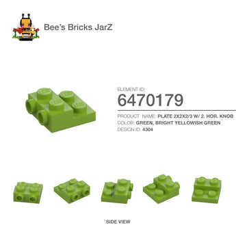 PLATE 2X2X2/3 W/ 2. HOR. KNOBCategory: Plates, Plates, ModifiedColour: Green, Bright Yellowish GreenElement ID: 6470179/6264064Design ID: 99206/4304