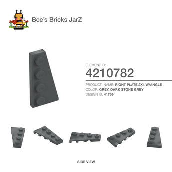 RIGHT PLATE 2X4 W/ANGLECategory: Plates, Plates, Round & AnglesColour: Grey, Dark Stone GreyElement ID: 4210782Design ID: 41769